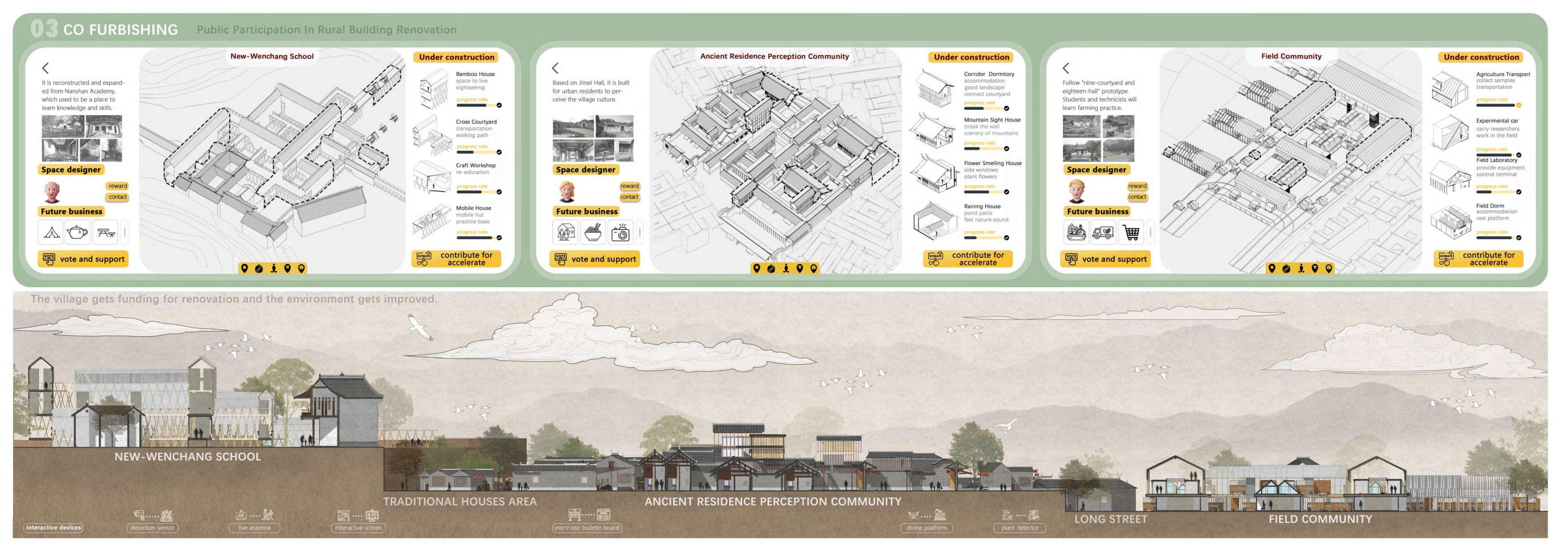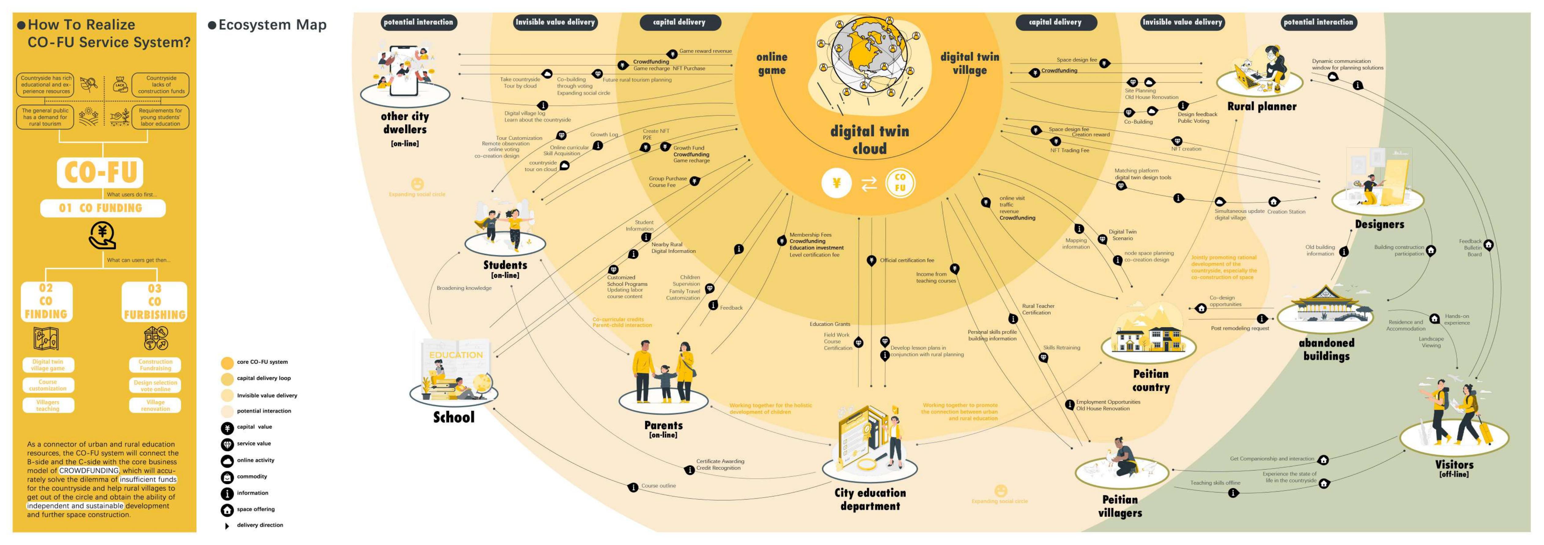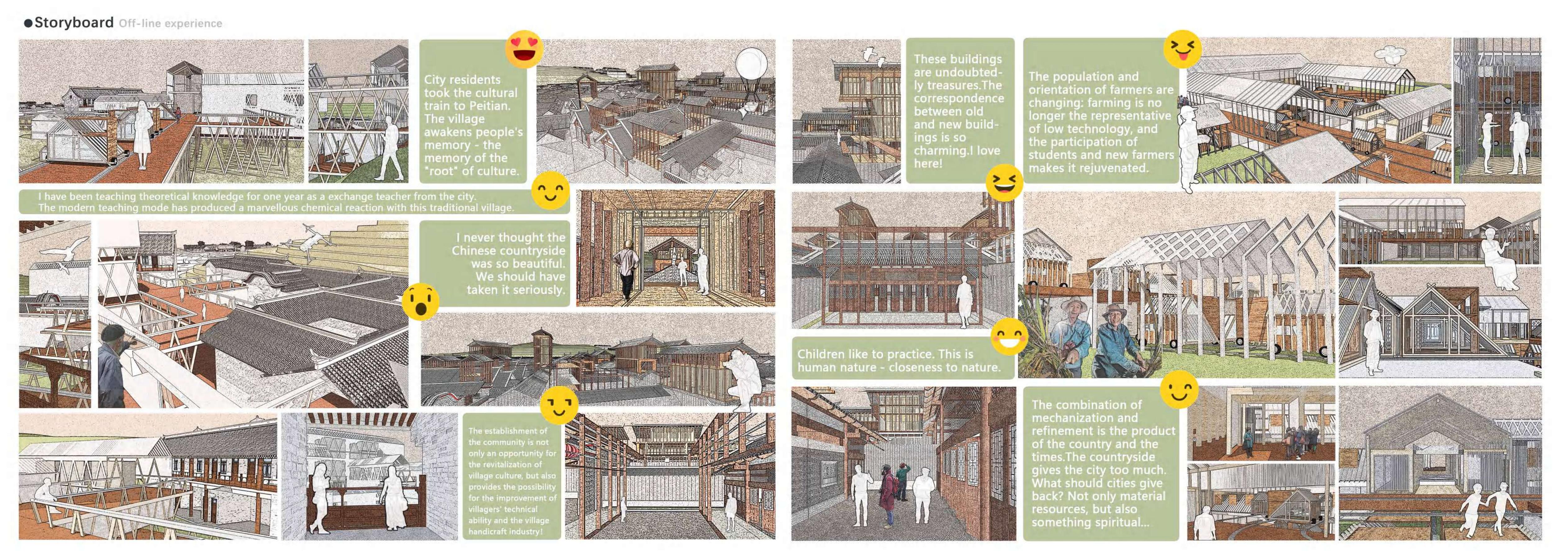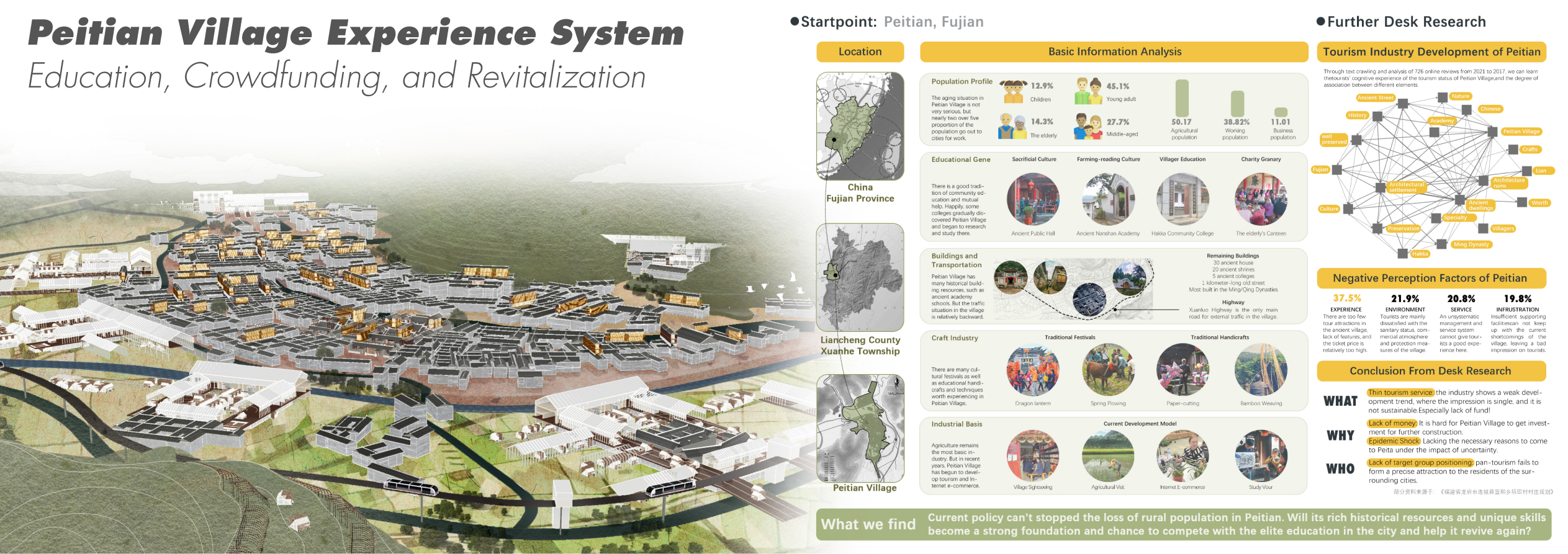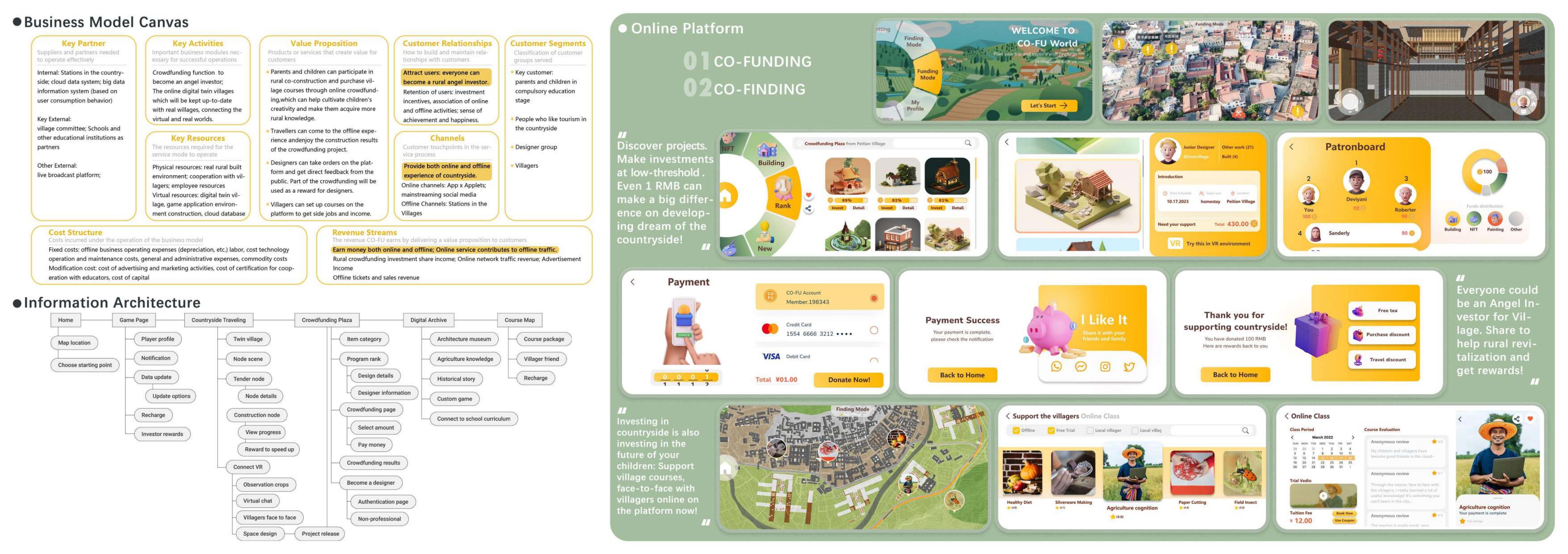 This project combines space transformation 🔧, a custom app 📱, and an integrated service system to turn Peitian Village's local culture into engaging educational experiences 🏛️🎨. Visitors explore historic architecture, traditional crafts, and local produce 🌾 while participating in a gamified education-to-crowdfunding cycle 💡💰 that drives sustainable development. By linking learning, experience, and contribution, the system creates a self-sustaining loop 🌟 that benefits both the village and its visitors.